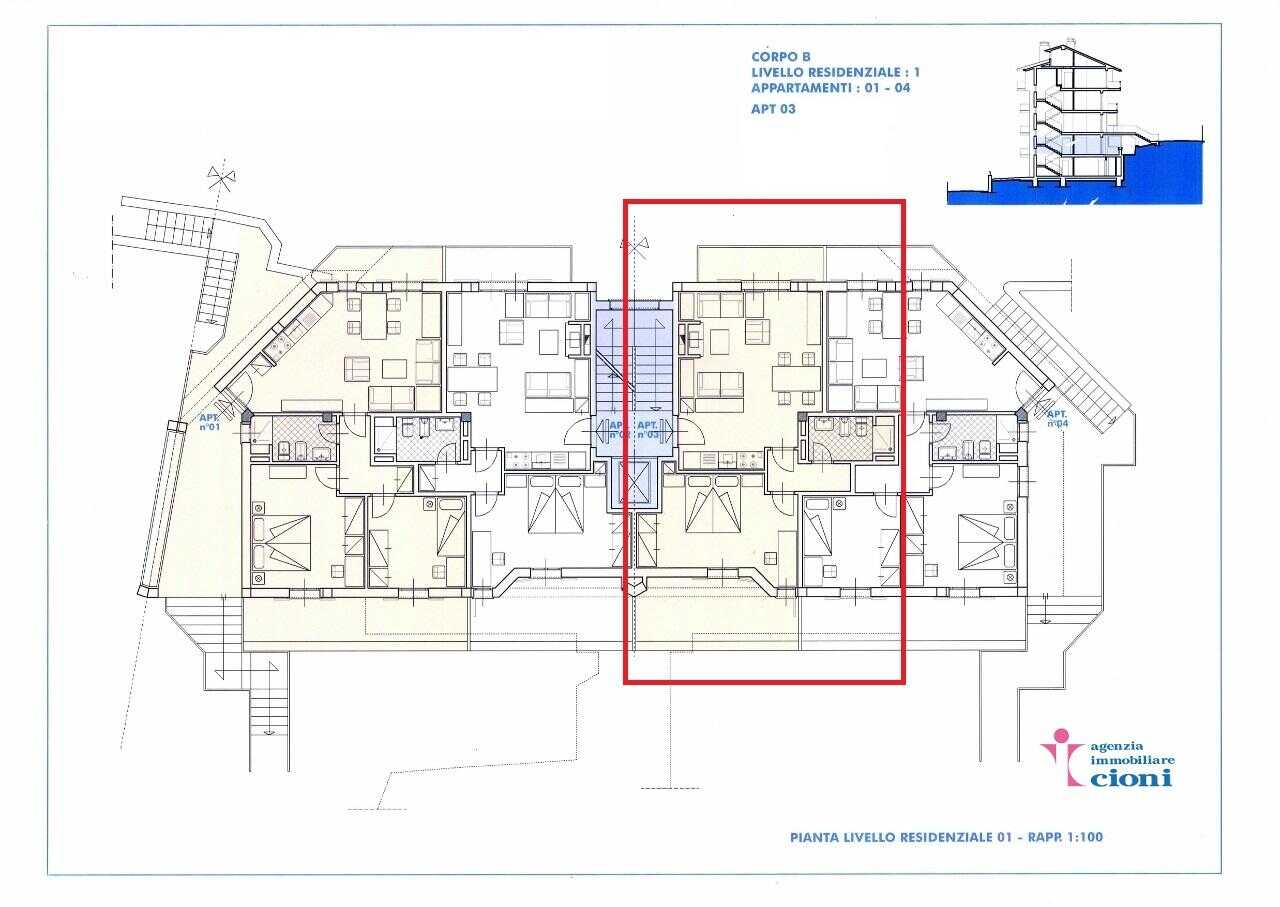 Posizione dell'Appartamento Bilocale Le-Motte Abetone Mq 65 Piano Primo Seminterrato.