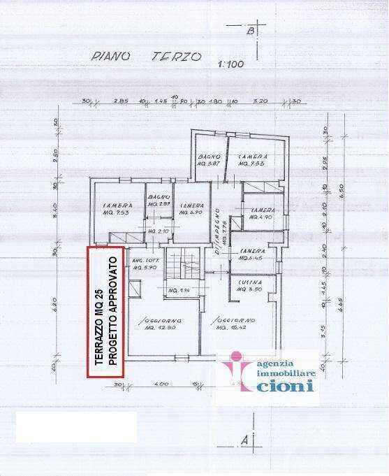 A Fianco della Mansarda Trilocale, può essere ricavato un Terrazzo di Mq 25,